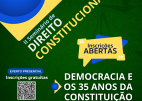 Para se inscrever, o interessado deve acessar a plataforma de eventos Sympla pelo endereço www.sympla.com.br, fazer a busca pelo nome do evento (II Seminário de Direito Constitucional - Democracia e os 35 anos da Constituição Federal) e preencher os dados solicitados. As inscrições são gratuitas e serão emitidos certificados aos participantes.