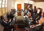 Acompanharam a assinatura do Termo de Cooperação o desembargador Cleones Cunha; os juízes Douglas de Melo Martins (coordenador de Monitoramento, Acompanhamento, Aperfeiçoamento e Fiscalização do Sistema Carcerário); José dos Santos Costa (coordenador de Monitoramento, Acompanhamento, Aperfeiçoamento e Fiscalização do Sistema Socioeducativo) e Nilo Ribeiro (juiz auxiliar da Presidência do TJMA); o secretário de Administração Penitenciária, Murilo Andrade de Oliveira; a presidente do Conselho Penitenciário, Susan Lucena e o defensor público e vice-presidente do Conselho, Thiago Josino.