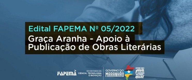 A Fundação de Amparo à Pesquisa e ao Desenvolvimento Científico e Tecnológico do Maranhão (Fapema) abriu as inscrições para submissão de propostas ao Edital Literatura Graça Aranha. Serão investidos recursos no valor de R$ 500 mil no financiamento de publicação de obras literárias nos gêneros romance, poesia, biografia, dramaturgia, literatura infantil, literatura de cordel, quadrinhos, ensaio e memória literária. As inscrições estão abertas até o dia 13 de abril. O edital está disponível no endereço: https://www.fapema.br/edital-fapema-no-05-2022/.