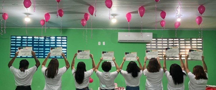 Mais uma turma de socioeducandas da Fundação da Criança e do Adolescente (Funac) recebe certificados do curso Design de Sobrancelha. A iniciativa é uma parceria do Governo do Estado, por meio da Funac, com o Instituto Estadual de Educação, Ciência e Tecnologia (Iema), por meio do projeto de Formação Inicial e Continuada (FICs).