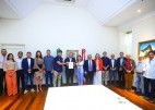 Na assinatura de conclusão da implantação do Bunker de Radioterapia do Hospital de Câncer estiveram presentes Tiago Fernandes, secretário de Estado da Saúde (SES) ; Claudia Fernanda Costa Silva, chefe do Serviço de Articulação Interrativa e Superintendente Estadual do Ministério da Saúde; Luzia Waquim, chefe de Gabinete do governo; Marcelo Duailibe, presidente da Emersh; Gilmar Bandeira, Superintendente da Associação Brasileira de Entidades de Assistência Social ( ABEAS); Sérgio Catardo, diretor geral do Hospital Dr. Tarquínio Lopes Filho; Antônio Dino Tavares, vice-presidente da Fundação Antônio Dino; Mayara Nunes, secretária adjunta da SES; Vinicius Ferro, gestor do Fundo Estadual de Saúde (FES), e, Laryssa Campos, representante da Leoma Construções.