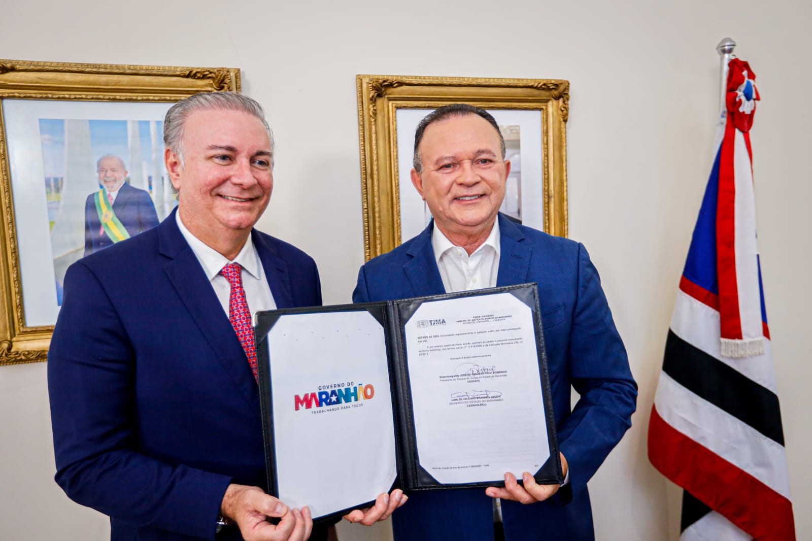 O ato de cessão do prédio pelo Tribunal de Justiça do Maranhão ao Executivo Estadual foi assinado, na manhã de quarta-feira (21), pelo desembargador José de Ribamar Froz Sobrinho e o governador Carlos Brandão, este se comprometendo em instalar a sede da gestão estadual na cidade de Imperatriz.