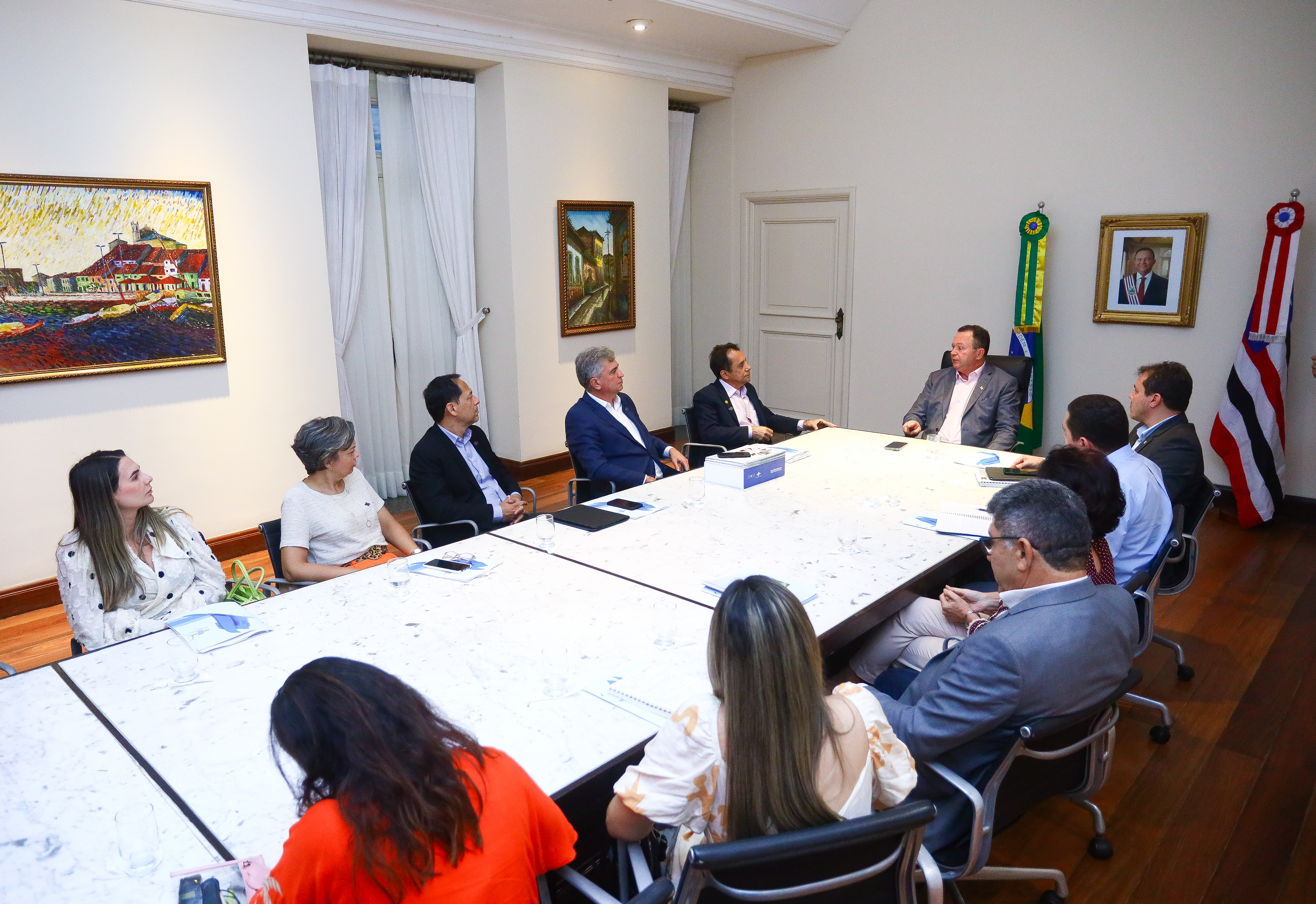 Nesta segunda-feira (16), no Palácio dos Leões, o governador Carlos Brandão, juntamente com o secretário de Estado de Indústria e Comércio (Seinc), Cassiano Pereira Júnior, recebeu o Conselho Deliberativo do Sebrae Maranhão para alinhamento de importantes projetos do eixo do empreendedorismo para o Maranhão.