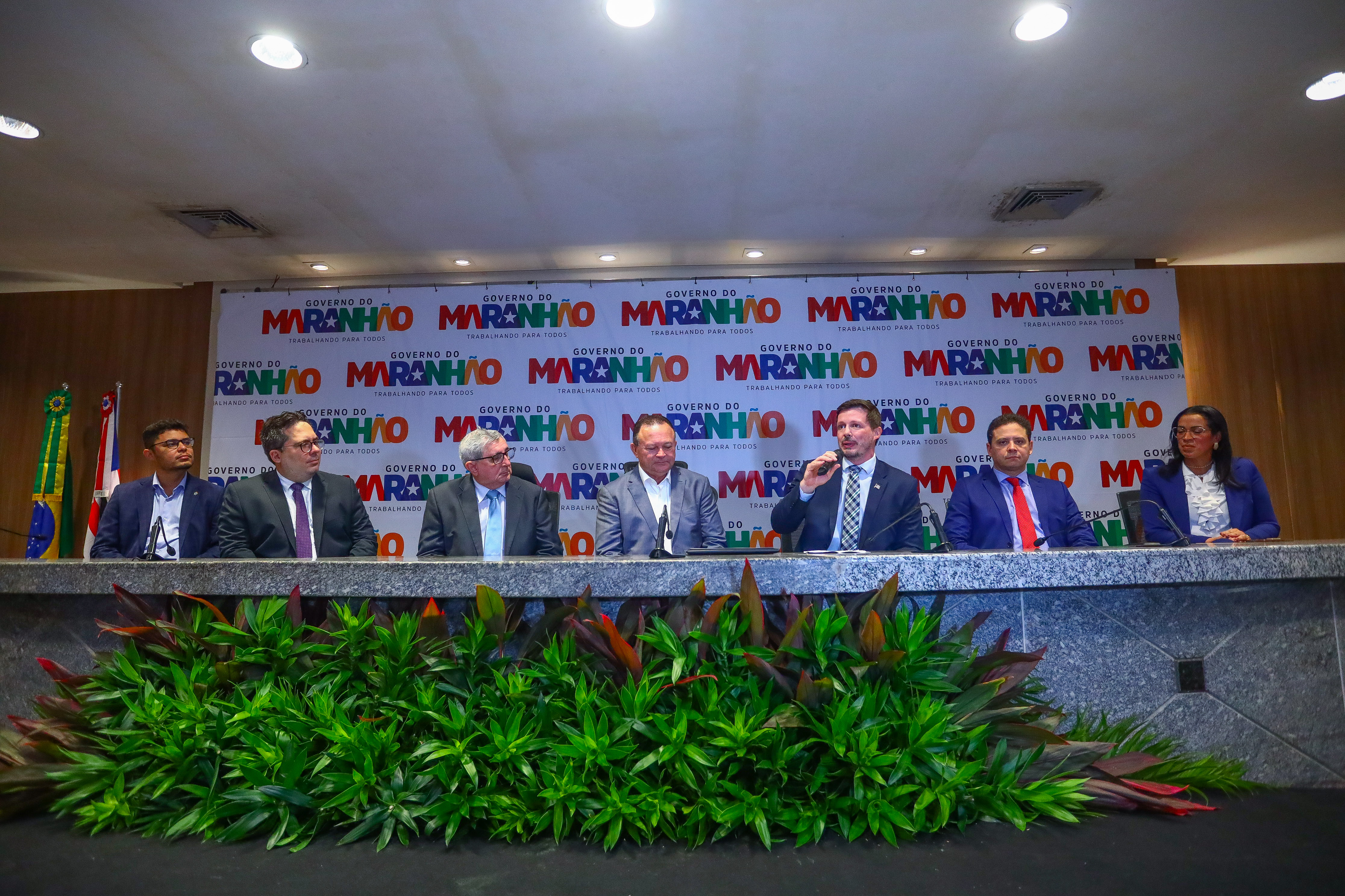 Presentes ao lançamento, o defensor público do Estado, Gabriel Furtado; o procurador geral do Estado, Rodrigo Maia; o vereador Ribeiro Neto, primeiro vice-presidente da Câmara Municipal de São Luís, no ato representando o presidente da casa, Francisco Chaguinhas; a secretária adjunta de Finanças, Daniele Mesquita; e demais secretários de Governo e conselheiros do TCE.