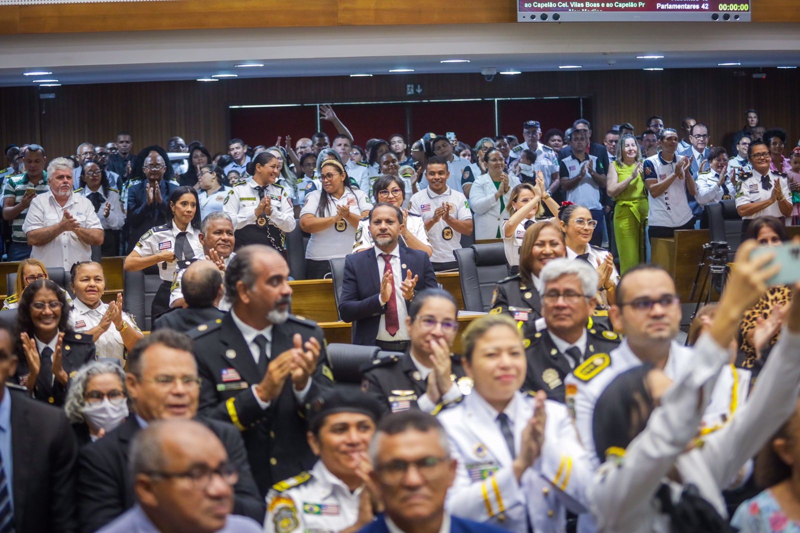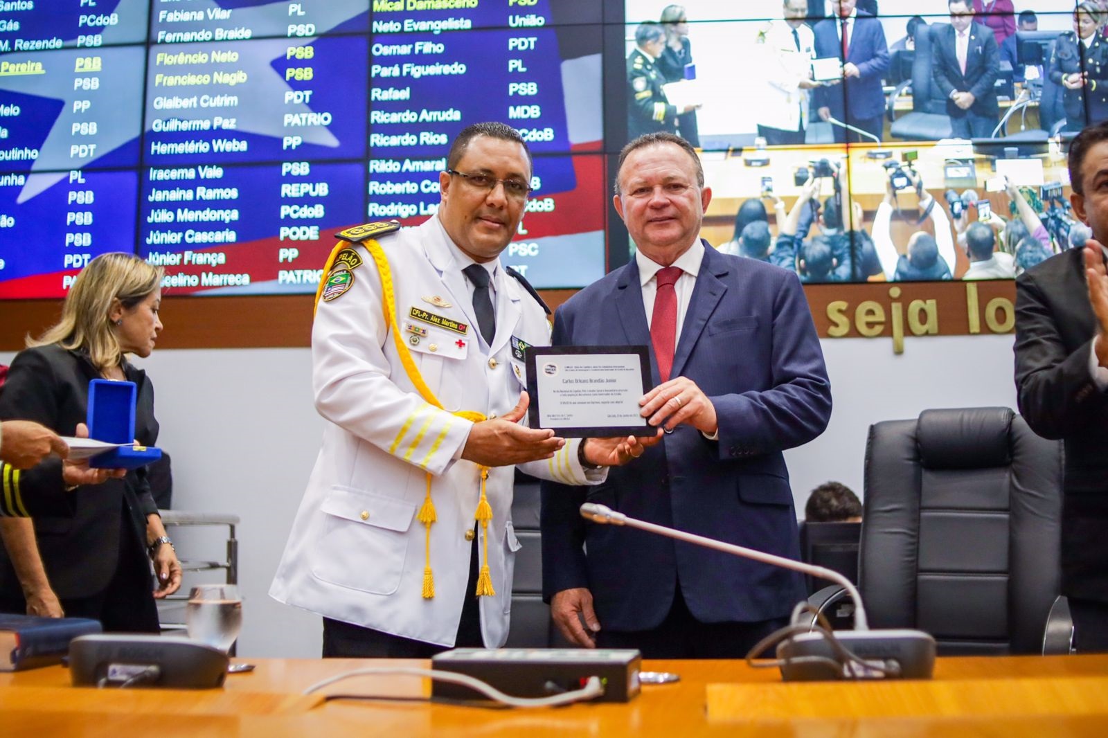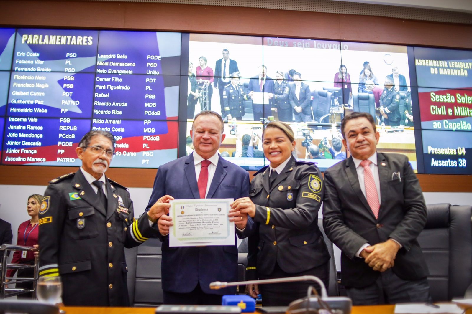 A solenidade foi presidida pelo deputado Antônio Pereira, primeiro-secretário da Mesa Diretora e que representou a presidente da Casa, Iracema Vale, em viagem institucional a Brasília. Na ocasião, o governador Carlos Brandão e a deputada Mical Damasceno receberam placas de reconhecimento pelo trabalho em prol das ações desenvolvidas pelos capelães. Também foram homenageados os capelães Alex Martins e José Ribamar Vilas Boas com a medalha ‘Manuel Beckman’, maior comenda do parlamento estadual.