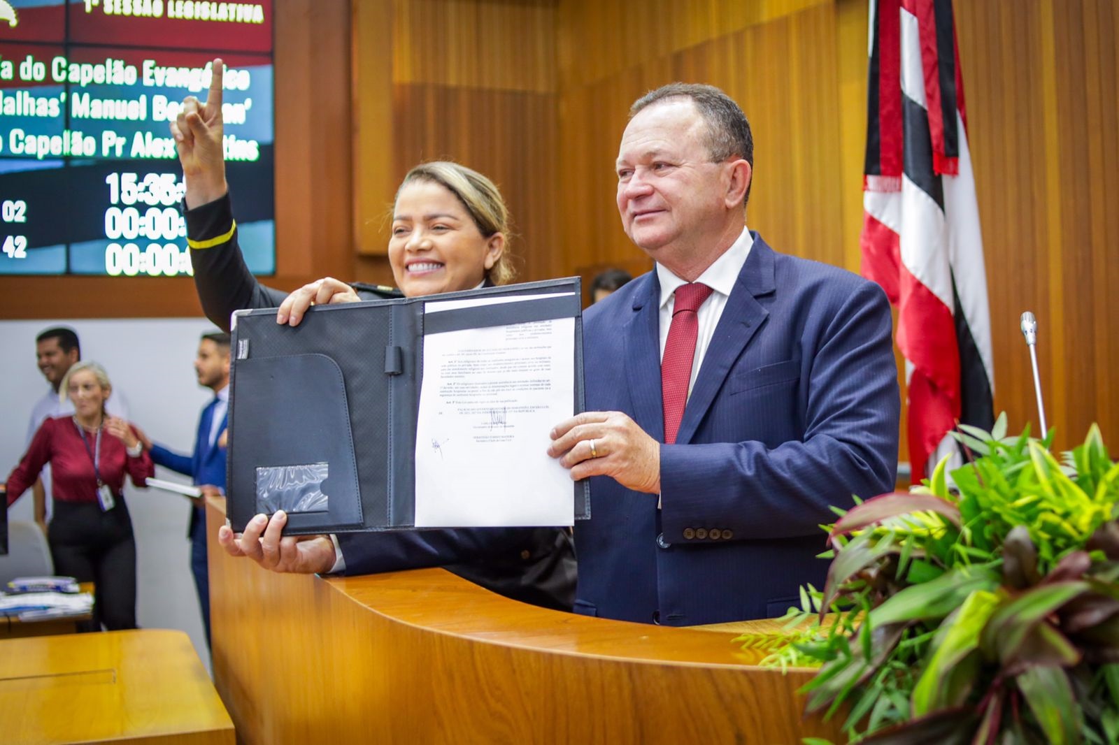 O governador Carlos Brandão assinou um decreto autorizando o trabalho de capelães em espaços do serviço público como escolas, penitenciárias, hospitais e unidades da Polícia Civil e Polícia Militar. O documento foi assinado nesta quarta-feira (21) durante solenidade pelo Dia do Capelão Evangélico Civil e Militar realizada pela Assembleia Legislativa no Plenário Nagib Haickel.