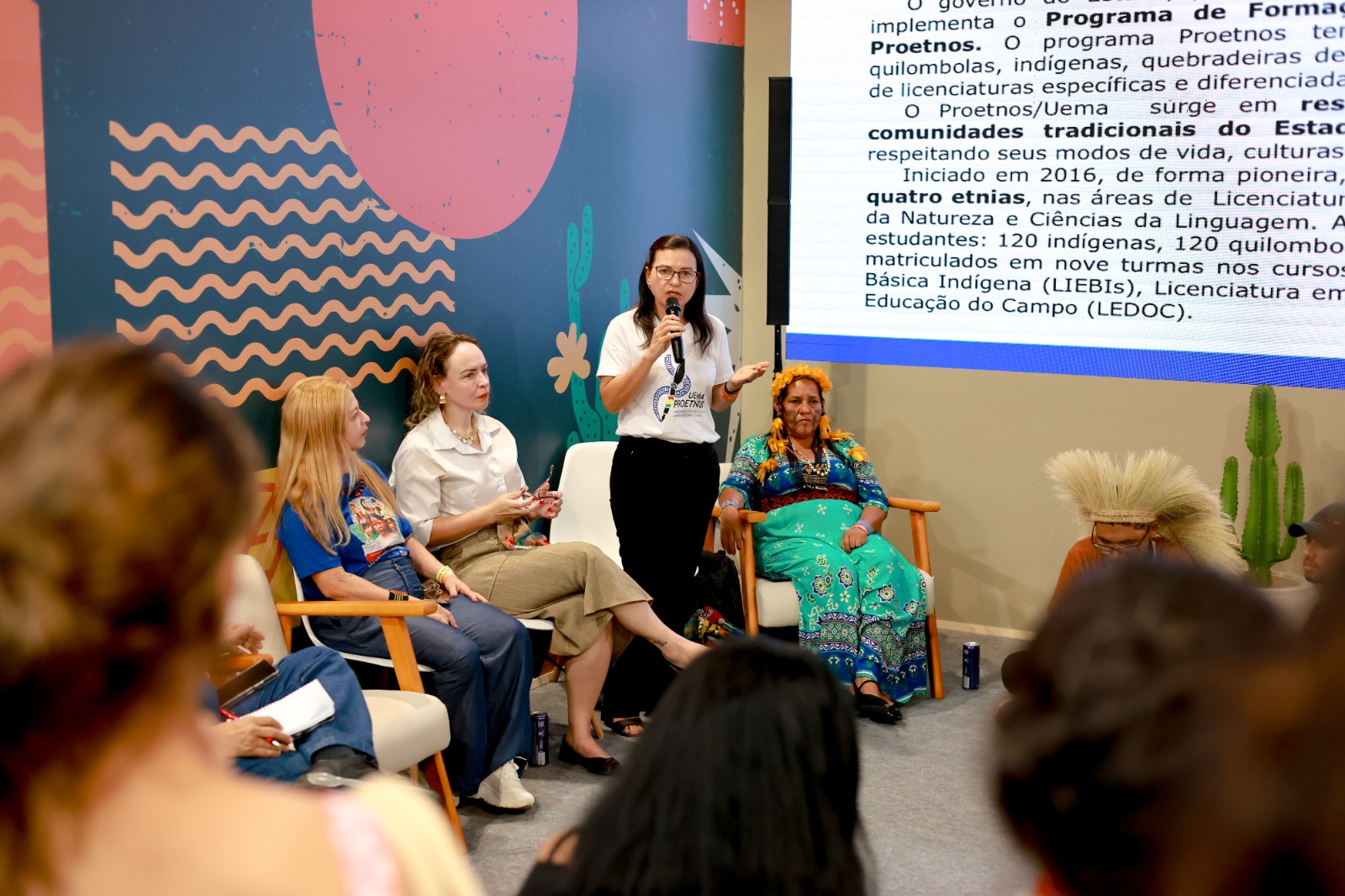 O governo maranhense apresentou, nesta segunda-feira (17), a experiência exitosa do Programa de Formação Docente para a Diversidade Étnica (Proetnos) aos participantes da 30ª Conferência das Partes (COP30), que está sendo realizada em Belém (PA). O painel ‘Inclusão e Interculturalidade’ foi apresentado no Espaço Brasil Nordeste, na Zona Verde da COP30, e destacou os avanços no Maranhão ao longo dos últimos nove anos.
