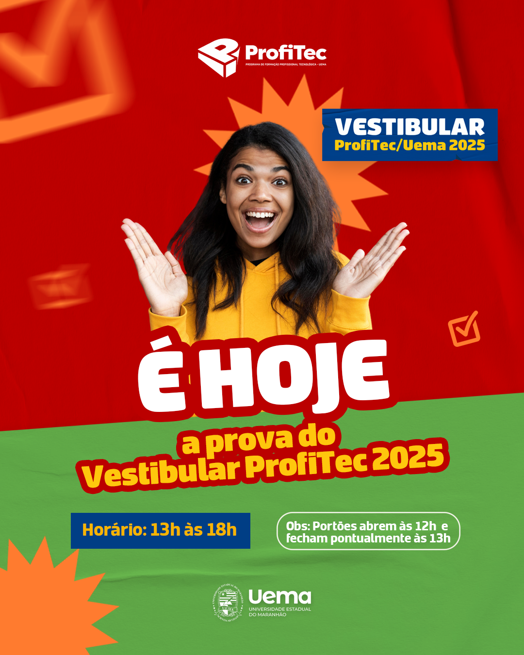 A Universidade Estadual do Maranhão (Uema) realiza neste domingo, dia 6 de julho, a prova do Vestibular ProfiTec 2025, processo seletivo que oferta 400 vagas gratuitas em cursos superiores de tecnologia distribuídos em nove cidades maranhenses.