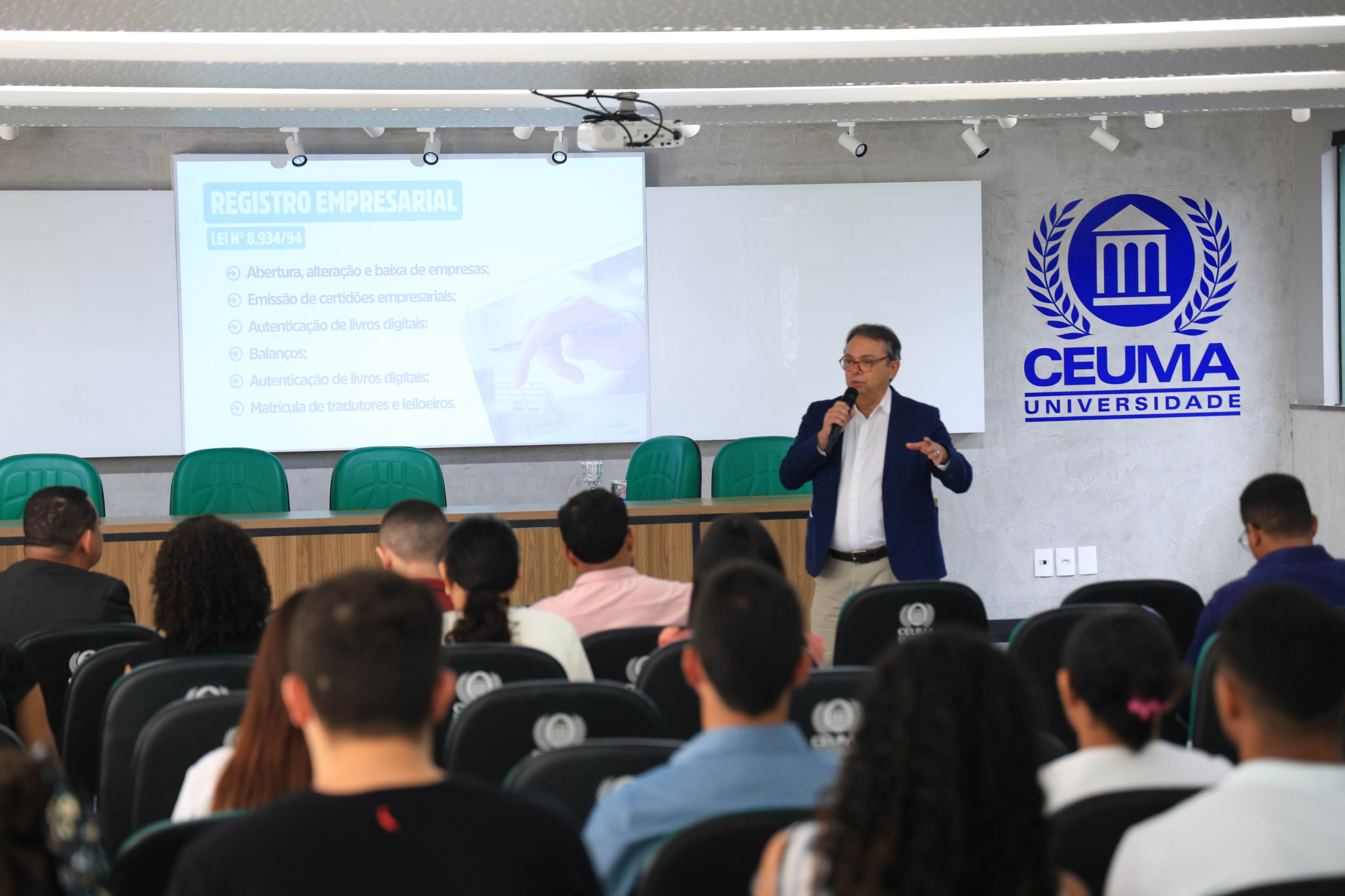 A aplicação da inteligência artificial (IA) e os avanços na digitalização dos processos de abertura de empresas no Maranhão foram os principais destaques da palestra ministrada pelo presidente da Junta Comercial do Estado do Maranhão (Jucema), Sérgio Sombra, nesta quarta-feira (21), durante a IX Semana Acadêmica de Contabilidade (SEACONT) do Centro Universitário do Maranhão (Ceuma). O evento também contou com a participação da coordenadora da RedeSim, Francisca Sousa, e do chefe da Secretaria-Geral da Jucema, Carlos André Pereira, que contribuíram com informações técnicas sobre a integração sistêmica e os resultados práticos da transformação digital no registro empresarial.
